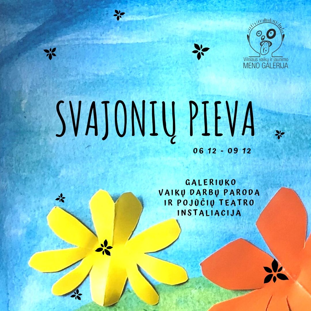 SVAJONIŲ PIEVA kviečia kūrybiškai pažvelgti, pajusti ar išgirsti lauko pievą. Prisėsti ir pasvajoti, stebėti pievos gyvenimą, užuosti jos kvapus ir išgirsti garsus. Prigulti ir pajusti žolės stiebelius šiurenantį vėją bei žaidžiančius saulės spindulius. Netikėtai aptikti paunksmėje čiurlenantį upelį, jo atspindžius danguje. O tarsi pievos horizonte matomi miražai vaizduotę kurstys mažųjų kūrėjų darbeliai.